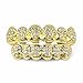 FINEST MATERIAL: 18K lab cubic zirconia face grills for teeth is electroplated 4 times gold based on the environmental brass so it will never tarnish or change color easily and is safe to health. We use the 5A+ round cubic zirconia to sparkle the grillz.
