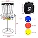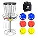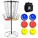 This disc golf basket set includes 5 pieces starter discs (putter/mid-range/driver) and a basket carry bag and add four hooks for a stable base.