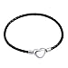 DESIGN - romantic braided leather heart bracelet for women, girls & teens, thin 3mm classy black genuine leather bracelet with stainless steel puffed heart in silver, available in 2 sizes of 6.5 and 7.5 inches and features secure, unique closure.