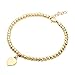 Feature – Classic ball bead style Yellow Gold bracelets with small love charm drop; smooth polish stainless steel heart shape accessories; lightweight comfy chain bangles; sophisticated high quality wrist wear; trendy stackable layer jewelry for ladies