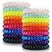 Damage free 50pcs Spiral hair ties for women and girls, Colorful bulk hair coils included 10 rainbow color coil hair ties soft, strong stretchy and comfortable feel for thin, fine, thick curly long hair.