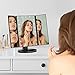Trifold Vanity Mirror with 2X and 3x magnification-- Tri-fold mirror design shows full view of face makeup and hair style,2X and 3x magnification mirror on the left panel for close up skincare, like eyebrow and eyeshadow. Non-flickering lit mirror for makeup and FCC, CE, and RoHS Certification.