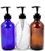 6 - 8 oz, assorted colors (Clear, Amber, Cobalt Blue) glass bottle's, with black Lotion Pumps.