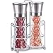 PORTABLE ADJUSTABLE PEPPER GRINDER REFILLABLE: The grinding core is mated by 2 ceramic rotors. Adjustment is as easy as turning the top subdial. From large pieces until close to dust. Easy twisting for the elderly/children. Our salt and pepper grinder set comes with a handle carrying stand so you can easily remove and place the salt and pepper shakers with one hand. Wider base makes the stainless steel salt and pepper grinder harder to drop, perfect gift for family and friends!