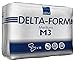 The Abena Delta Form size M3 fits hips 27.5"-43"; Absorbs up to 108 fl oz