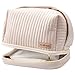 DOUBLE LAYER COSMETIC BAG: The bottom compartment of the travel makeup bag with compartment is designed with a special brush holder and a PVC stain-proof divider. It allows you to organize your makeup brushes and eyeliners in an orderly manner and prevents the compartment from getting dirty. The shock-absorbing sponge cushion at the bottom can protects the eyeshadow palette and lipstick inside the cosmetic bag!