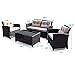 Crafted with all-weather PE rattan wicker and strong steel frame, this patio furniture set is durable and solid, built for long time use. The wicker coffee table features a gorgeous tempered glass top that perfectly highlights your patio or poolside decorate.
