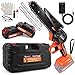 【Ease of Use and Installation】This mini chain saw cordless does not require installation, you only need to oil the chain, and can be used, you can be equipped with a screwdriver to adjust the tightness of the chain, please wear goggles when using it to protect eyes, parallel to the ground angle to replace the battery more easily, when replacing the chain need to pay attention to the direction of the chain.