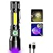 【Led flashlights + Magnet base + UV light】: The led flashlight comes with a COB tool light, which can be used with a magnet. When two hands are required for operation, it can be attached to the metal and the COB light is used for auxiliary operation. The COB light also comes with red or red and white flashing light, which can achieve the warning effect;-with UV ultraviolet light, you can clearly see the stain watermark, pet urine, harmful insects and animals, and verify banknote documents.