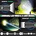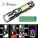 【Zoomable, One key turn off ,7 modes】 : Fully zoomable from wide to narrow beam, 7 lighting modes: high/low /strobe/UV light/COB white/COB red/COB side strobe light mode.(one key turn off, you could turn off the flashlight at any mode, no need to cycle through all mode to turn off this tactical flashlight)