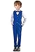 5 piece boys royal blue suit set includes:blazer jacket,dress pants,vest,white dress shirt & adjustable tie