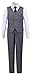 5 piece boys gray suit set includes:blazer jacket,dress pants,vest,white dress shirt & adjustable tie