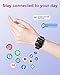 【1.7" HD Full Touch Screen and Smart Life Partner】Check daily workout clearly on a 1.7'' HD bright color display. Create customized fitness schedules and goals, Get vibration alerts for all notifications, including phone calls, texts, and social media app alerts. Never miss a message with smart notifications delivered right to your wrist. You also can check real-time weather and change your music on the smartwatch