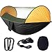 【All the installation tools included】Camping Hammock with Mosquito Net and Rain Fly,Various accessories, easy to install.Automatic quick-open design, with upgraded metal steel carabiner, 98 inch 5 + 1 rings tree straps and other accessories, superior easy to install and enjoy it, no need to knot, complete the installation in seconds.Extra bonus sleep mask and inflatable pillows will help a lot, it will improve your sleep and relax your eyes . Save your TIME and MONEY. Perfect gifts for him/her.