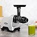 Easy To Use: Equipped with a powerful but quiet gear reduction equivalent to a 2HP motor, this juice maker generates enough torque to process tough ingredients; Juice press also features an extra-large feed tray and convenient built-in handle