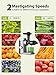 Dual-speed Versatility - "1" low speed runs from 12000 to 15000 RPM for softer fruits like oranges, apples, grapes or tomatoes; "2" high speed runs from 15000 to 18000 RPM for harder fruits like carrots, celery, beets, kale, ginger and more.