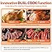 【Fast & Even cooking, Less-oil, Crispy】The convection fan of air fryer generate 360°hot airflow produces crispier exterior and moist tender interior with less oil,providing you with perfect taste and healthy diet. The innovative dual cook function enables you to combine any two functions in preset. Make Complex recipes effortless and rich the dish's flavor.Double Glass door heat insulation reduces heat loss effectively reduces preheat time.