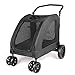 🐕【Spacious Jogging Stroller】Designed to fit small, medium or large pets, the AESRAOU doggy stroller provides a large 31” L x 22” W x 25”H waterproof interior. The entrance is 11" off the ground making it easy for pets to jump into the 20" x 16" opening. AESRAOU pet stroller is ideal for medium and large dogs or two dogs traveling together, going shopping, vet visits, or daily walking.