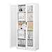 【Modern Tempered Glass Doors Design】:Our tall display cabinet adopts the design of tempered glass doors, the high-definition glass material can make it easier for you to observe the items stored inside to meet your various organization needs for storing your books, photo albums, decorations, and so on. This tall bookcase with glass doors also can be used as a functional storage cabinet to perfectly organize your daily essentials.