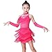 💗💗【Select Size】Girls shiny sequins tassels salsa latin dance dress with gloves choker and underwear, fit for 4-12 year-old toddler kids baby. Long fingerless gloves for girls metallic wet look evening opera stretch eblow mittens lady dance party dress. Fringe strap dress, sparkling sequin diamond front and swing fringe skirt, charming backless design. Amazing and elegant sparkling sequins tassels make you a super star when you dance. A wonderful choice for both practice and performance.