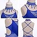 💗💗【Halter Backless Sparkle Sequins Lyrical Dress Design】Women girls lyrical dance dress modern contemporary dance costumes for competition. Royal spandex leotard with flowy mesh insert and attached matching skirt. Beautiful sparkling glitter dress with ballet suit inside. Cut out backless lyrical ballet dance leotards, elegant halter neckline with hook closure, makes it graceful and charming. Attached asymmetrical mesh skirt with a slit for ease of movement.