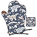 Oven Mitts and Pot Holders Set: Dino oven mitts (5.7*11 inches) and pot holders (8*8 inches), kitchen oven mitt set can protect your wrists and forearms well
