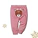 Pants feature elasticized waists and ribbed cuffs. One pair has applique at seat