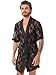 Men See-Through Lace Night-Robe Short Sleeve Bathrobe Sissy Nightwear Sleepwear with T-back Belt