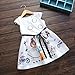 Girls Round Neck Short Sleeve Cartoon Graffiti Print Sash with Loops A-line Dress