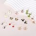 Pack of 16 pairs small gold leverback earrings. Includes a variety of animals earrings, fruit earrings, unicorn earrings, butterfly earrings, bee earrings, mermaid earrings, beach earrings, daisy earrings, pineapple earrings, strawberry earrings and so on