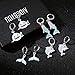 Pack of 16 pairs small silver dangle hoop earrings for girls. Includes unicorn, mermaid, cat, dog, butterfly, flamingo, shark, dolphin, owl, ladybird,rainbow, soccer, planet earrings