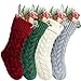 4 value rustic knitted Christmas stockings included 1 burgundy, 1 gray,1 ivory,1 green knitted Christmas stockings.