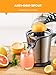 【User-friendly Design】- Transparent dust cover and anti drip spout. TheAiheal electric orange juicer has a convenient storage function, Slide down the window to store the juice, or lift the window let juice straightly flow into your glass or bottle.