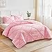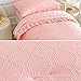 【Soft & Comfortable】:The Microfiber Comforter Features Geometric Pattern Stripes, in subtle hues, with eyelash-looking woven details that add a charming accent to the top of the bed. Hidden bartacks create a clean, duvet-like finish.