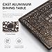 [BUILT-TO-LAST CAST ALUMINUM] The cast aluminum all-weather patio dining table retains its elegant appearance even after years of age. Our outdoor dining table have been treated with a surface powder coating process, which is rust-resistant, weather-resistant, fade-resistant, and chip-resistant. The aluminum patio table features an oil-rubbed bronze finish for a timeless look that is designed to withstand the elements year-round.