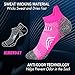 MESH TOP & CUSHIONED SOLE: Mesh ventilation can release the heat and keep your feet at moderate temperature.Dry Moisture Management Provides Superior Moisture Transport with our Ultra Wicking Fibers. Max Cushioning place in sole areas of high impact,Provide perfect balance on cushion and comfort to reduce sock and foot pain during sports or daily activity.Good matching for all of outdoor activities.