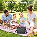 FEATURES: - Dual zippered lunch bag, heat-sealed PEVA lining INSULATED main compartment is designed to maintain hot or cold foods at longer time and hold up to 6 cans (12 oz) regular coke, Open mesh pocket on back and Front zippered pocket is designed for napkins, spoons, keys, cellphone and other small item such hand sanitizer or masks, comes with adjustable shoulder strap