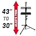 Adjustable. Height adjusts 24″–45″ to suit the individual needs of players, styles, and postures and ensure comfortable use while sitting or standing. The height settings lock in place with a tightening knob for dependable placement.