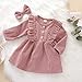 UNIQUE DESIGN- Cute baby girl long sleeve dress,solid color,long sleeve,front chest button,ruffle sleeve design,crewneck,easy to put on/off,bowknot hair clip,the best gift for your little princess,she will love it. baby girl solid dress,little girls casual dresses,baby girl party dress,corduroy dress for toddler girl,baby girl warm dress.