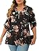 【Features】Womens plus size tops 3/4 sleeve ladies blouse/ Loose fit/ Floral print patterns/ Henley V neck/ Flowy hem t shirt for women