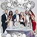 🎈【DIY Balloons Arch Garland Kit】Package Includes 35Pcs 12'' white balloon, 10pcs 12'' metallic silver balloon, 15pcs 10'' white balloon, 10pcs 10'' silver confetti balloon, 15pcs 5'' white balloon, 15pcs 5'' metallic silver balloon, 1 roll of 100 glue points ,1 x 32Ft long balloon ribbon, 1 x 16Ft long balloon strip, in total 103 pieces