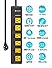 [Full Protection] 1200 joules of protection protects your electronics from damage caused by surges, spikes or power outages. 15 amp circuit breaker is equipped with instant response to catastrophic events and overloads for maximum protection. 14AWG UL listed extension cord with 3-hole grounded plug brings more comprehensive safety protection.