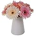 Package Include: 3 orange artificial gerbera flowers , 3 pink artificial gerbera flowers, 3 light yellow artificial gerbera flowers, 1 white wide-mouthed ceramic vase.