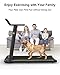 【No assembly required】This 2-in-1 treadmill arrives fully assembled and can be used right out of the box.The collapsible design and transport wheels allow for easy mobility and portable collapsible treadmill storage that folds up and walks in one easy step,Make a perfect gift for your family.