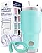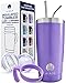 Bonus stainless straws and handle - in addition to the bonus lid, this thermal cup set includes 2 stainless steel straws, a cleaning brush, and a linen bag for easy storage. Plus, our insulated travel mug also comes with a removable, color matching handle.