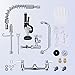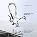 ✔Commercial Sink Faucet with Sprayer: Total height 25 inches from wall mount flange to the top. The 12 inches spout on the add on faucet part can reach 14.3 inches from wall. Suitable for most restaurant sinks, industrial sinks, and three-compartment sinks. Ideal for households, industries, hotels, restaurants, restaurants, bars, and shopping centers.