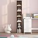LARGE STORAGE- 9.45" x 11.8" x 68.5"(D x W x H). 6 tier tall skinny bookshelf is available for placing massive books, magzines, photo, photographs, bins, newspaper, toys, vases, plants, basket and decorative items. It satisfies various needs.