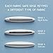 INCLUDES: Ergonomic handle with soft overmolded grip, integrated lint brush, 3 fabric safe edges, and drawstring travel pouch.