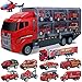 🚒10 in 1 Mini Die-cast Fire Engine Truck Toy Set: The set includes 10 high-quality die-cast alloy and plastic mix red fire rescue vehicle toys. Its different designs and functions in one carrier truck, luxurious assembly super value for your child. The best part is when it’s time for clean up they all fit back in side in a near and organized way
