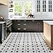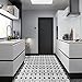 1️⃣Each package contains ten peel and stick floor tiles, each consisting of 5 black and 5 white tiles, each measuring 12 in by 12 in. This allows you to better arrange them in the way you like without creating patterns that are difficult to align